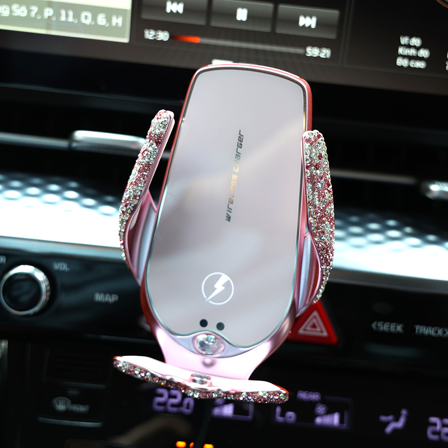 Công dụng của Giá Đỡ Điện Thoại Đính Đá Sang Trọng Cảm Biến Hồng Ngoại Kẹp Mở Tự Động Kiêm Sạc Không Dây Trên Ô Tô CIND V56