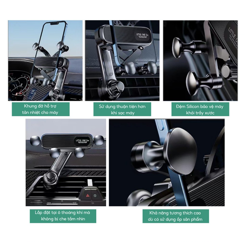 Công dụng: Giữ điện thoại chắc chắn, phù hợp kích thước điện thoại 4,2-7 inch, móc cửa gió khe ngang