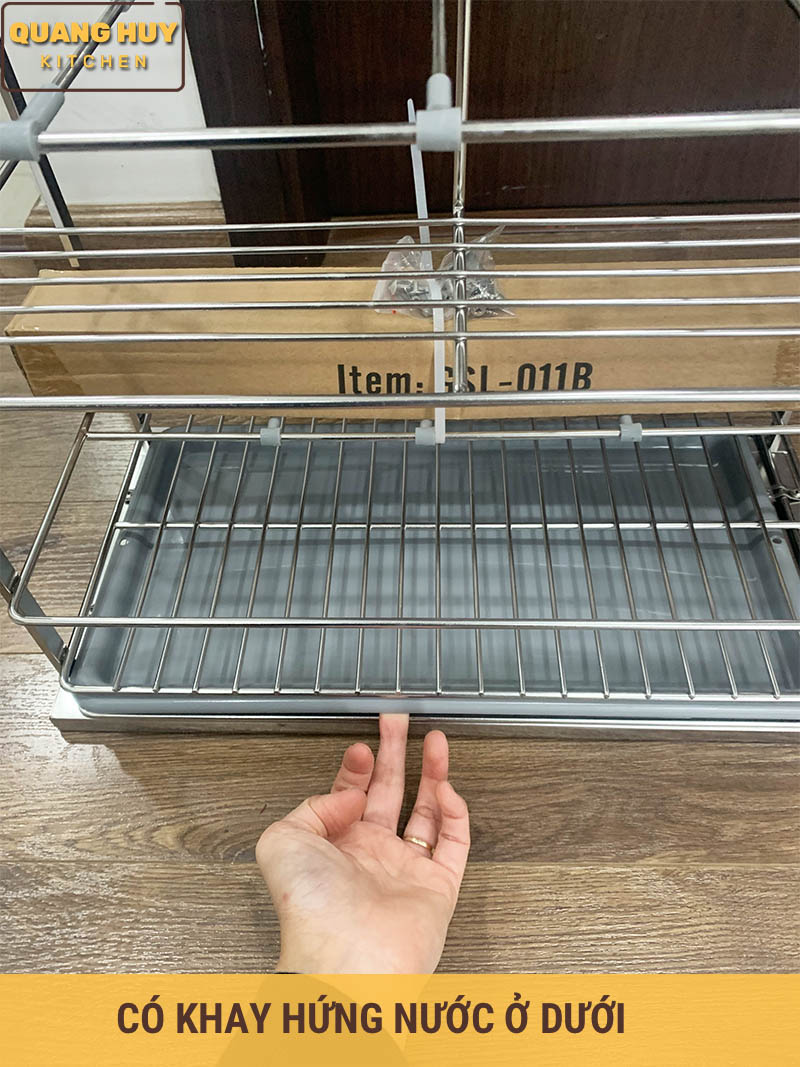 - Những ưu điểm của giá gia vị inox 304 3.1. Chất liệu nan inox 304 bảo hành vĩnh viễn han gỉ Hãng Grob cam kết chất liệu inox 304 và bảo hành vĩnh viễn han gỉ. Đi kèm với giá gia vị có kết quản thử nghiệm inox 304 của tổng cục đo lường chất lượng kèm theo Trên sản phẩm đều có tem điện tử kèm theo để phân biệt hàng chính hãng và bảo hành. Quý khách hàng nhận hàng và cào tem để kích hoạt bảo hành Kết quả thử nghiệm inox 304 chuẩn inox 304 Không chỉ có nan mà gắn cánh, ốc vít khung rổ bằng inox 304 chống han gỉ vĩnh viễn Hình ảnh chụp gần chất liệu inox mở 304 Giá được thiết kế nan dẹt đẹp mắt và tinh tế Đường nét của giá được thiết kế tinh xảo Hình ảnh 1 bộ giá gia vị inox 304 kích thước 300 3.2. Ray giảm chấn cao cấp hoạt động êm ái Ray giảm chấn của giá gia vị inox 304 được thiết kế thép dày, chịu lực tốt. Tính năng giảm chấn tốt, hoạt động êm ái, nhẹ nhàng khi đóng mở Khả năng chịu lực của ray giảm chấn lên đến 50kg bạn tha hồ để đồ mà không lo bị kẹt ray Nhờ có hộp số ABS giống như phanh ABS nên tính năng giảm chấn hoạt động tốt không gây tiếng kêu "Cộc" mỗi khi đóng cửa tủ bếp Khả năng chịu tải của ray từ 40-50kg 3.3. Thương hiệu Grob uy tín Với thương hiệu Grob SUS dập liền trên giá gia vị 3.4. Giá được thiết kế 3 tầng khác biệt với các giá gia vị khác trên thị trường Các giá gia vị khác trên thị trường thường chỉ thiết kế 2 tầng, để được ít đồ nhưng giá gia vị này được thiết kế 3 tầng tha hồ để đồ Thiết kế 3 tầng tăng không gian để đồ Tăng khả năng để đồ 3.5. Khay hứng nước ở bên dưới Phía dưới của kệ gia vị có khay hứng nước bên dưới. Khay bằng nhựa dễ vệ sinh và tháo ra Khay hứng nước bên dưới 3.6. Linh hoạt điều chỉnh thanh cài Khác với các kệ gia vị khác là thường hình tròn fix sẵn kích thước của các lọ gia vị, nếu gia vị to quá lại không vừa, nhỏ quá bị lọt thì kệ gia vị inox 304 GRob này có thể điều chỉnh được kích thước của các thanh cài cho phù hợp với giá chai lọ Linh hoạt điều chỉnh các thanh cài cho phù hợp với các chai lọ khác nhau Gắn cánh tăng cường bằng inox có thể tăng chỉnh dễ dàng lắp đặt tăng cường sự ổn định cho sản phẩm Các loại khác trên thị trường không có khả năng tăng chỉnh bất lợi khi lắp đặt
