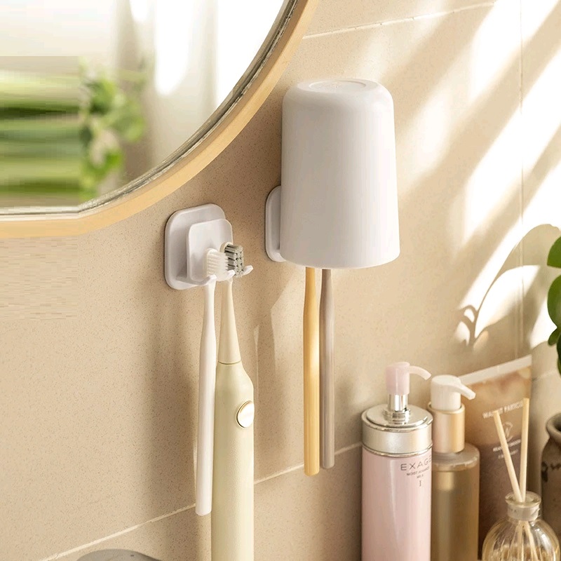 Giá - Móc Nhựa, Dán Tường Treo Bàn Chải Đánh Răng Và Úp Cốc Gắn Tường Nhà Tắm