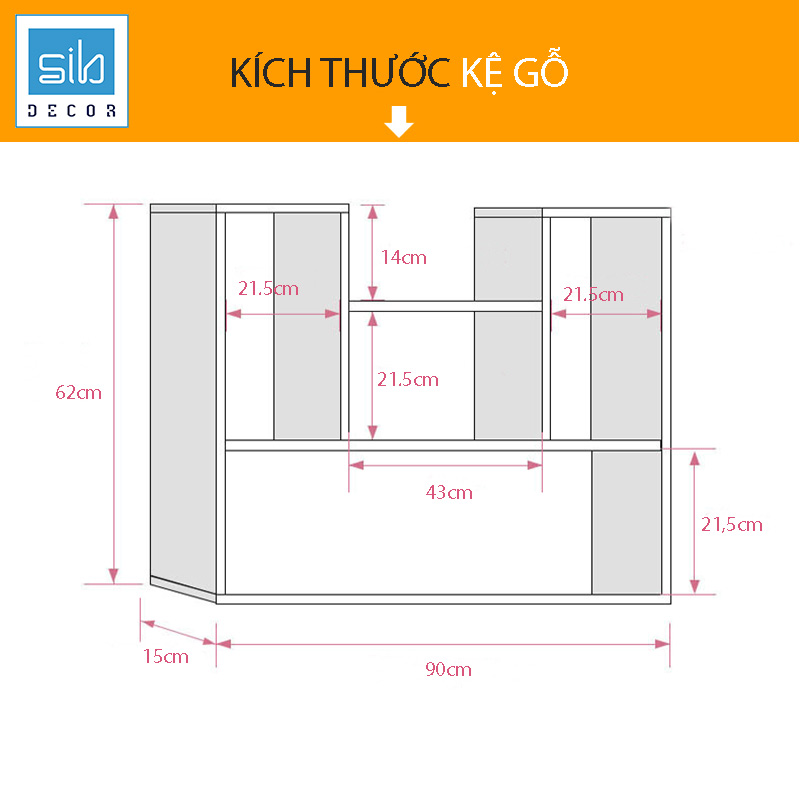 - Các tầng có chiều cao lọt lòng 21,5cm được thiết kế vừa với các khổ sách đứng (với khổ sách lớn hơn bạn có thể để sách nằm).