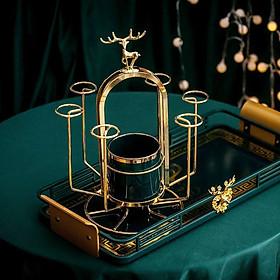 Combo Bộ 6 cốc thủy tinh cao cấp kèm giá úp tròn có khay hứng Combo gồm: 1 bình 6 cốc cốc 1 giá úp hươu 1 khay vương miện