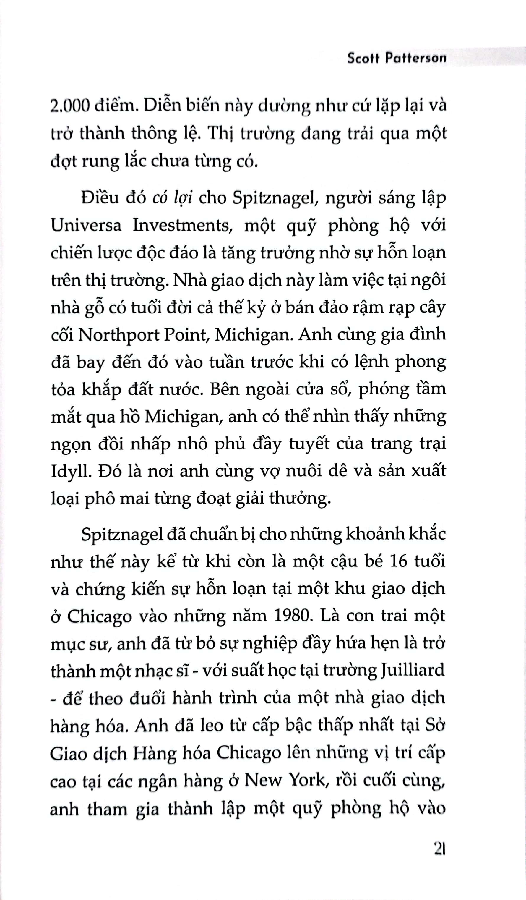 Tác giả Patterson phân tích các lập luận của họ để người đọc thấy được góc nhìn của những chuyên gia giao dịch đang quản lý hàng tỷ đô la tài sản. Từ đó, thấu hiểu cách những cá nhân này đối mặt với các sự kiện thảm khốc có nguy cơ khiến những tổ chức lớn nhất phá sản và thậm chí, họ còn có thể chuyển hóa rủi ro thành lợi nhuận, kiếm được cả gia tài trong khi phần còn lại của thị trường sụp đổ.