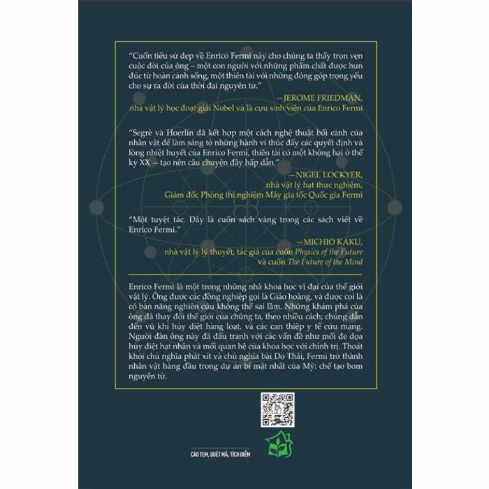 Mua tại TiktokEnrico Fermi là một trong những nhà khoa học vĩ đại của thế giới vật lý. Ông được các đồng nghiệp gọi là Giáo hoàng, và được coi là có bản năng nghiên cứu không thể sai lầm. Những khám phá của ông đã thay đổi thế giới của chúng ta, theo nhiều cách; chúng dẫn đến vũ khí hủy diệt hàng loạt, và các can thiệp y tế cứu mạng. Người đàn ông này đã đấu tranh với các vấn đề như mối đe dọa hủy diệt hạt nhân và mối quan hệ của khoa học với chính trị. Thoát khỏi chủ nghĩa phát xít và chủ nghĩa bài Do Thái, Fermi trở thành nhân vật hàng đầu trong dự án bí mật nhất của Mỹ: chế tạo bom nguyên tử .