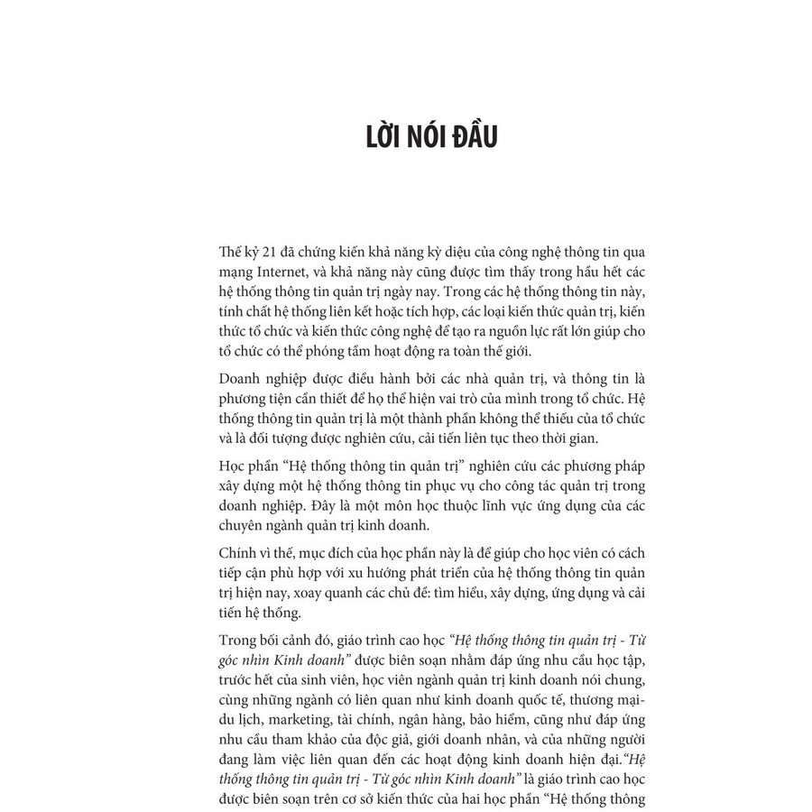 được đóng góp vào việc đào tạo nguồn nhân lực chất lượng cao, quyển Giáo Trình Cao Học Hệ Thống Thông Tin Quản Trị - Từ Góc Nhìn Kinh Doanh sẽ giúp cho học