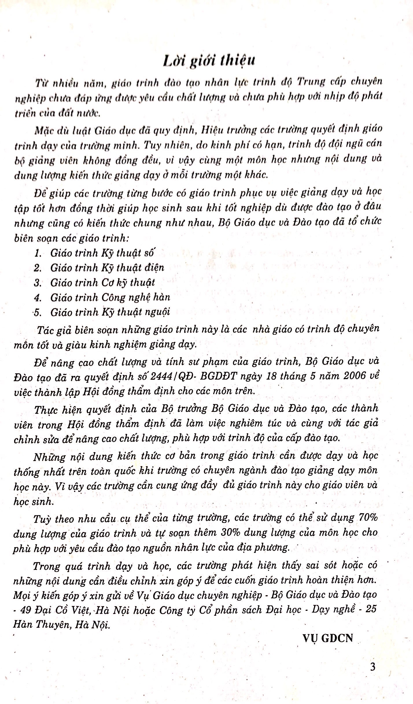Sách– Giáo trình Kỹ thuật số (dung cho các trường đào tạo hệ TCCN) Tác giả: Bộ Giáo dục và Đào tạo Số trang: 252 Kích thước: 16 x 24 cm Nhà xuất bản: Nhà
