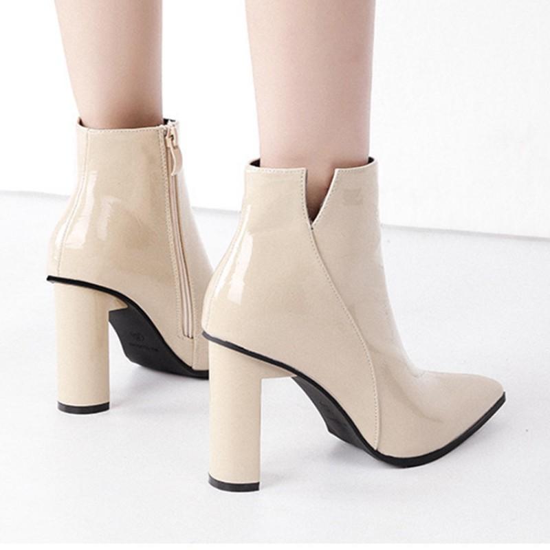 Bốt cổ ngắn màu kem gót 7.5cm bốt nữ