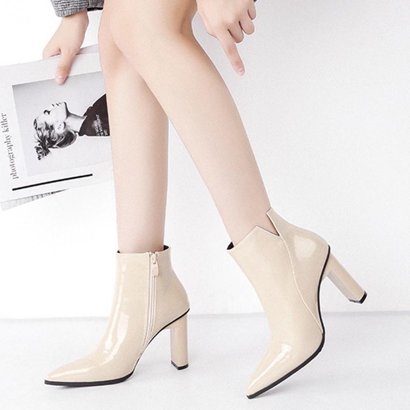 Đóng: Dây kéo phía trước Kích thước: 35 36 37 38 39 Hoa văn: Màu đặc Kiểu dáng: Hàn Quốc Chiều cao ống: Trung ống Các yếu tố phổ biến: Chuỗi Chiều cao gót: Cao