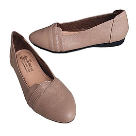 Giày Búp Bê Nữ Da Bò Thật Siêu Mềm Êm Chân VNXK GB01K Kem