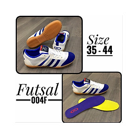 Giày đá bóng futsal mới màu xanh quân đôi cho độ bám sàn tốt cũng như có độ bền cùng độ dẻo dai cao, là chọn lựa lý tưởng của những bạn nam yêu thích