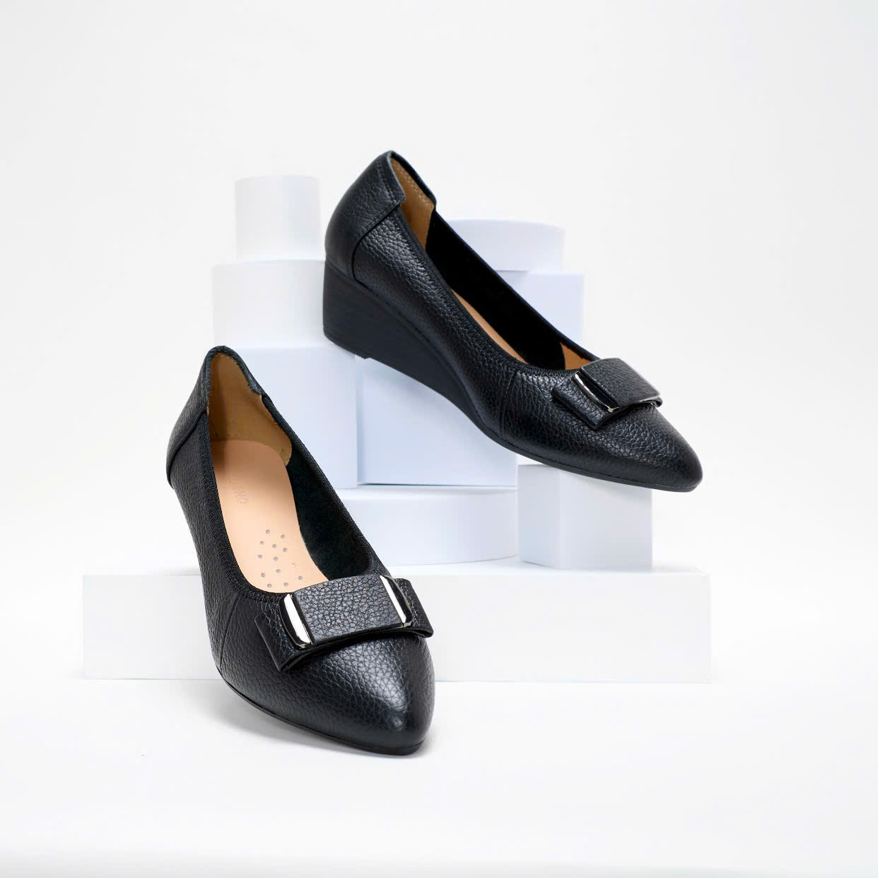Giày Đế Xuồng Nơ Khóa 5P PABNO PN17018 – Dáng Đẹp, Êm Chân, Dễ Kết Hợp Chất liệu: Da bò cao cấp Đế: Cao su TPR chắc chắn, chống trượt Gót: Cao 5cm Màu sắc: