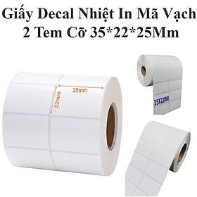 Giấy Decal Nhiệt In Mã Vạch 2 Tem Cỡ 35*22*25 Mm THÔNG TIN SẢN PHẨM Kích thước mỗi tem: 35x22 mm Số hàng tem: 2 hàng tem Chiều dài cuộn: 25 mét (tương đương gần