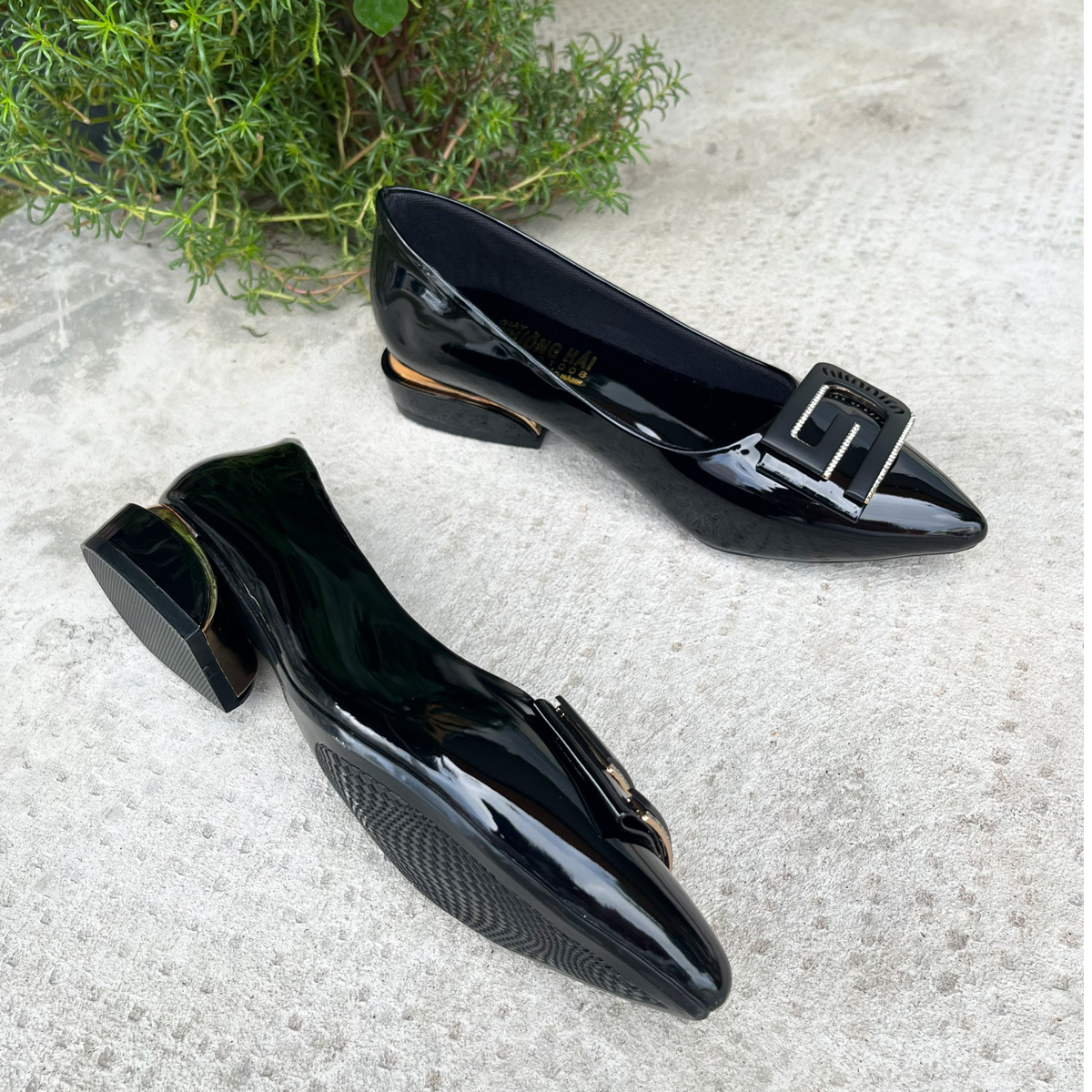 ✨Giày gót vuông 3cm da bóng Trường Hải 3 màu đen,trắng, hồng GV136Đ