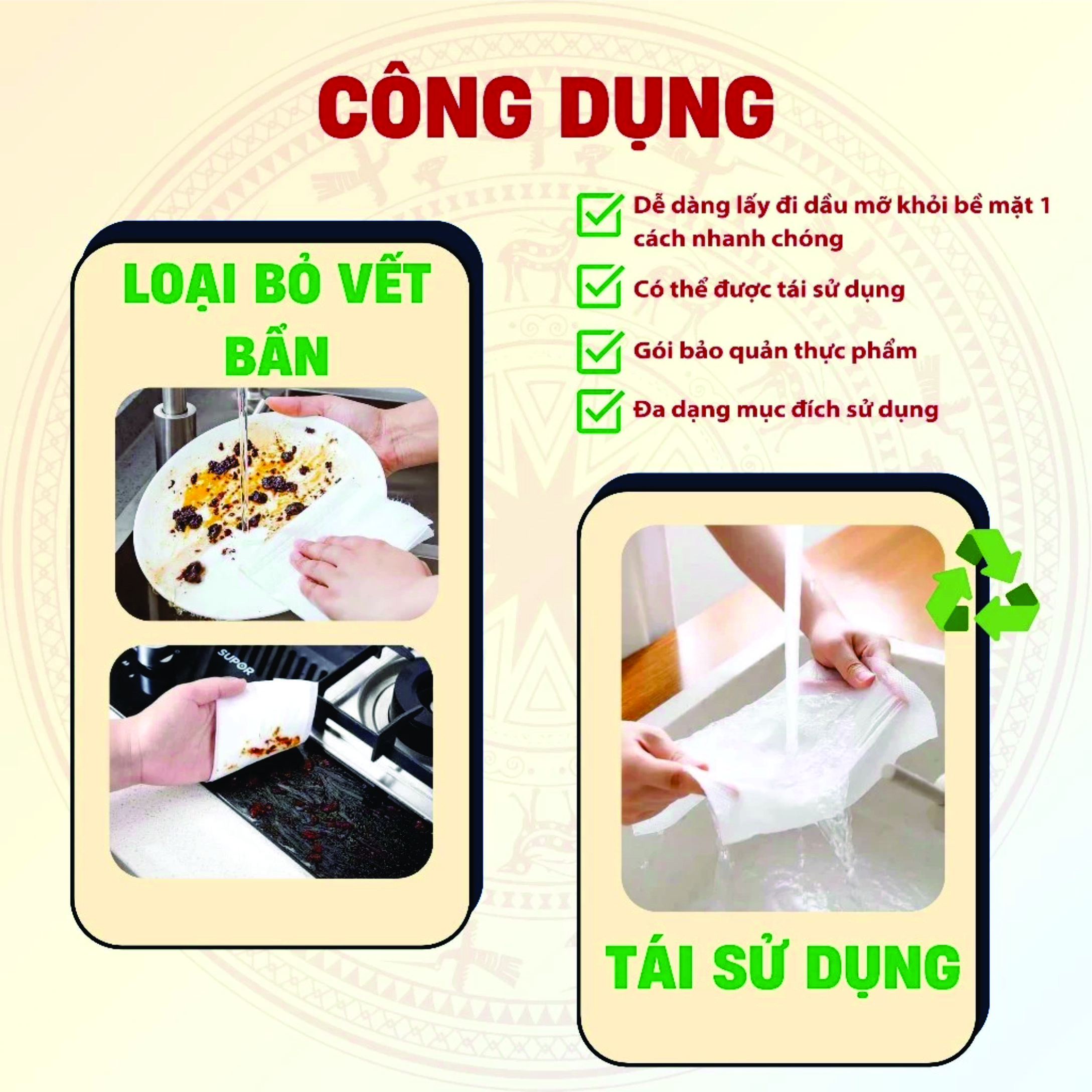 - Dòng sản phẩm đa năng, tiện dụng sử dụng trong mọi hoạt động hằng ngày: lau mặt, lau tay, thấm mồ hôi.
