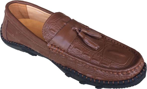 GIÀY MỌI NAM DA CÁ SẤU GAI ĐUÔI NÂU
