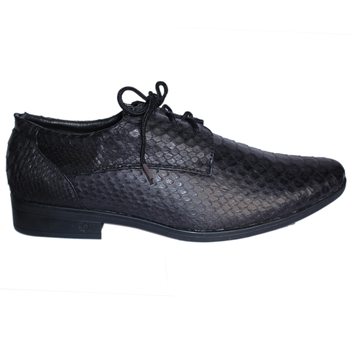 Giày tây nam Huy Hoàng da bò vân da trăn cột dây màu đen 7798