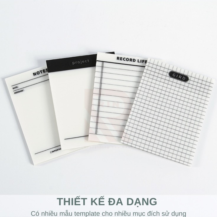 Màu sắc nhẹ nhàng, đơn giản. Giấy ghi chú trong suốt giúp ghi chú lên nội dung dễ dàng