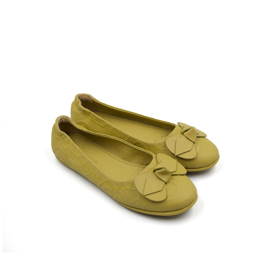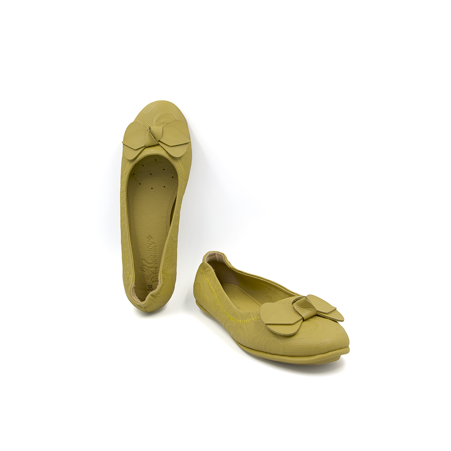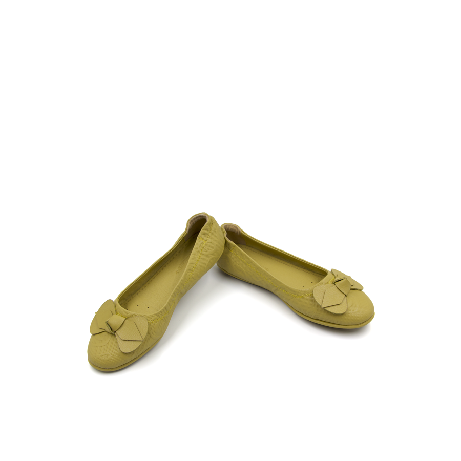 ✨Giày Nữ Búp Bê Đính Nơ Tomoyo Da Micro Fiber Khắc Hoạ Tiết Laser TMW31103