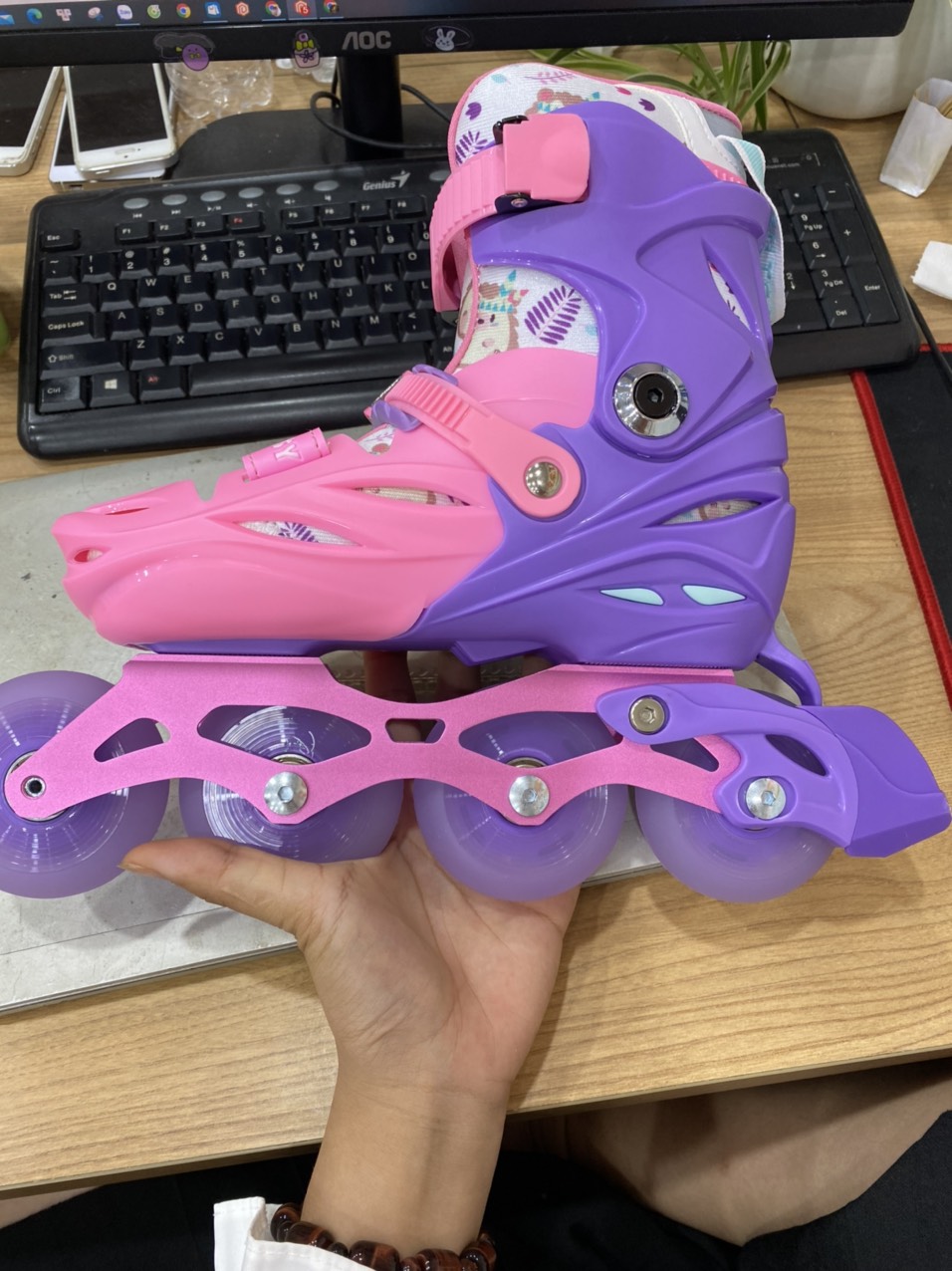 - Giày Trượt Patin Longfeng 906 Đại Nam Sport LF906 được thiết kế cải tiến với 2 bánh dọc trước, 2 bánh song song ở sau giúp cho bé trượt dễ dàng hơn. - Bánh xe