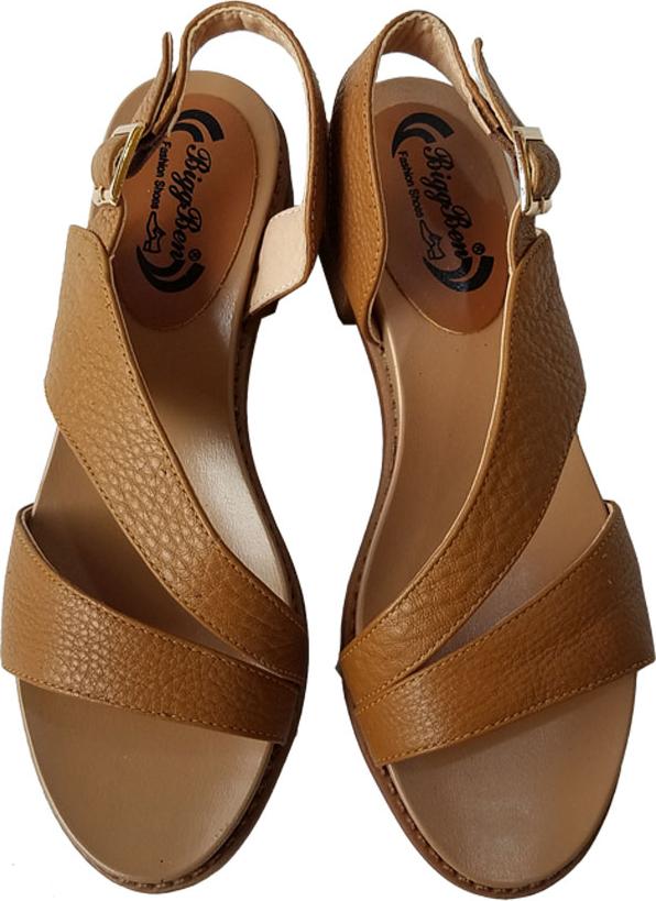 Dép xăng đan nữ đế vuông cao 5cm da bò thật
