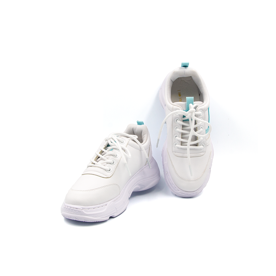 Tên sản phẩm: Giày thể thao thời trang unisex trắng xanh pastel 1. Thiết kế & Kiểu dáng - Phong cách hiện đại: Thiết kế trẻ trung, năng động phù hợp cả nam và nữ. - Tông màu trắng kết hợp xanh pastel mang lại cảm giác thanh thoát, dễ phối đồ. - Form dáng thể thao khỏe khoắn, phần mũi bo tròn và đường viền mềm mại giúp tôn dáng bàn chân. 2. Chất liệu & Cấu trúc - Upper (thân giày): Kết hợp vải lưới thoáng khí và da tổng hợp cao cấp, giúp giày nhẹ và thoải mái. - Đế giữa (Midsole): Làm từ EVA đàn hồi cao, hỗ trợ giảm chấn khi di chuyển. - Đế ngoài (Outsole): Cao su chống trượt với rãnh bám tốt, đảm bảo an toàn khi vận động. - Lót trong: Êm ái, thoáng khí, hạn chế mùi hôi khi mang lâu. 3. Công năng & Ứng dụng - Phù hợp cho nhiều hoạt động: đi học, đi làm, đi chơi, dạo phố hoặc thể thao nhẹ. - Trọng lượng nhẹ, tạo cảm giác thoải mái cả ngày. - Dễ phối với nhiều phong cách: quần jeans, váy thể thao, hoặc đồ streetwear. 4. Thông tin thêm - Màu sắc: Trắng – pastel. -