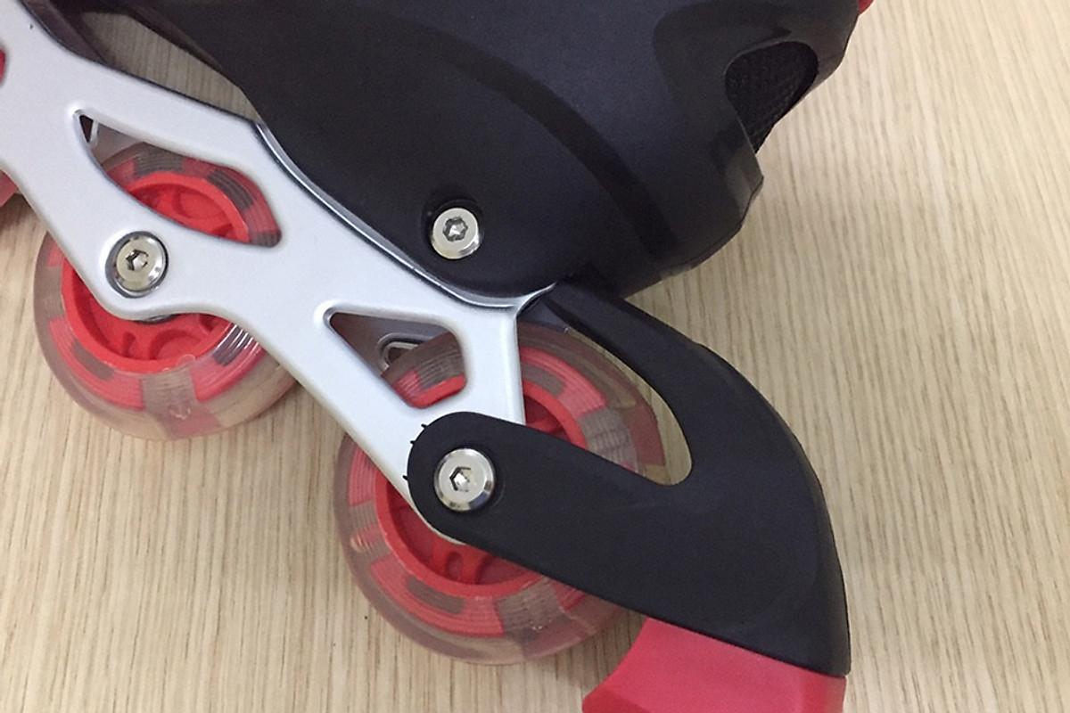 • Bên cạnh đó, giày có khung càng ghép làm bằng nhôm cao cấp, giúp giữ chắc chắn phần thân giày và phần bánh xe, mang lại sự an toàn và thoải mái cho người chơi. Ngoài ra, vòng bi linh hoạt giúp bánh xe hoạt động trơn tru, di chuyển một cách dễ dàng.