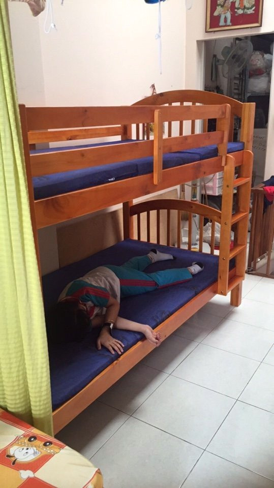 + Chất liệu: Khung giường gỗ thông Newzealand, phân tầng, Vách, đáy hộc gỗ công nghiệp, thang giường MDF chịu lực + Kích thước: kích thước phủ bì, tầng trên ưới 1mx2m Giường tầng hộp