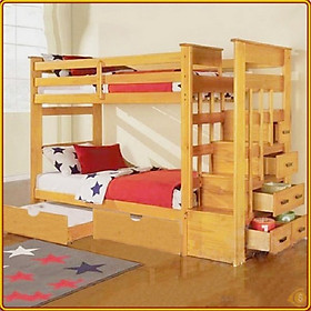 Thông tin sản phẩm: Sản phẩm chỉ bao gồm giường 2 tầng và cầu thang, không kèm các phụ kiện khác. - Chất liệu gỗ thông lâu năm nhập khẩu Canada bền bỉ, an toàn