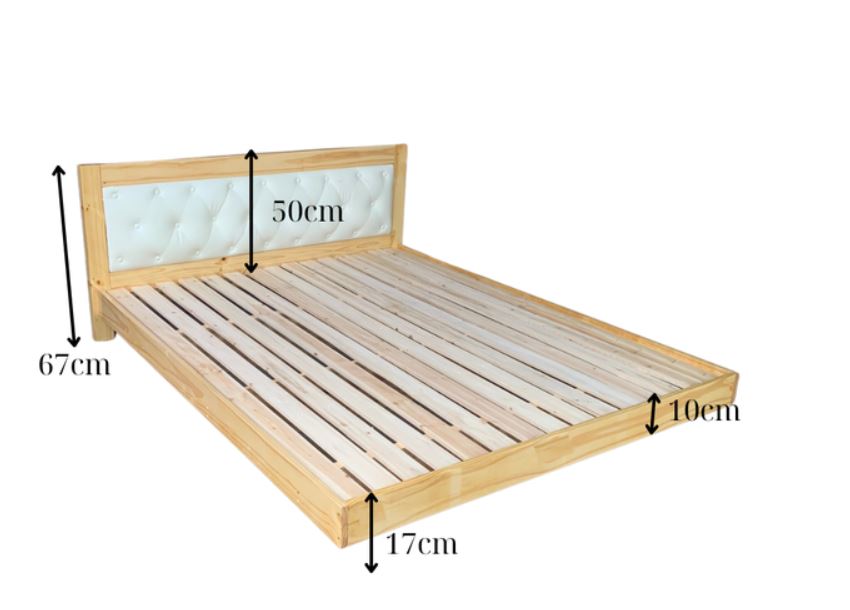 Chất liệu: Khung giường được làm từ gỗ thông nhập khẩu 100%. Chất liệu gỗ mang đến sự ấm áp, gần gũi với thiên nhiên và độ bền cao. Phần bọc nệm đầu giường có thể là da, vải hoặc nhung.