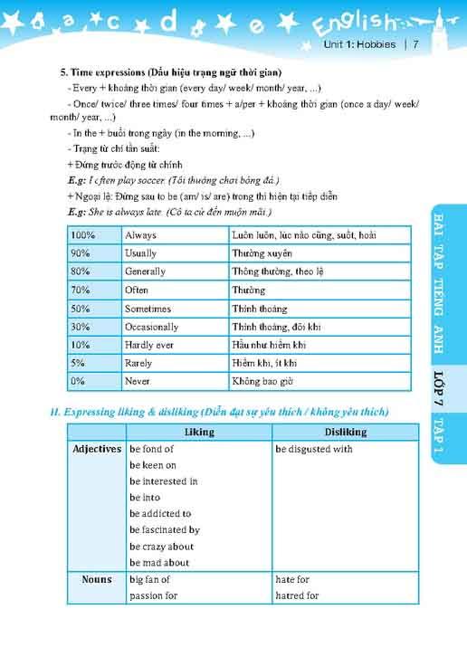 Với mong muốn giúp các em học sinh đầu cấp củng cố và mở rộng kiến thức ngôn ngữ trong chương trình tiếng anh lớp 7 . Các dạng bài tập phong phú , đa dạng, bám sát ngữ pháp và từ vựng theo chủ đề từng đơn vị bài tập .