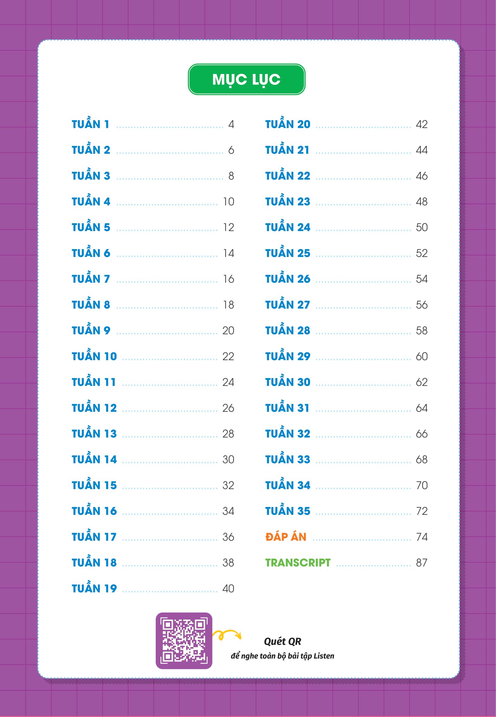 3. File nghe phát âm chuẩn (quét mã QR)   Mỗi bài tập đi kèm với mã QR cho phép truy cập vào file nghe phát âm chuẩn của từ vựng. Điều này giúp các em học sinh luyện nghe và học phát âm chính xác ngay từ đầu, xây dựng nền tảng ngôn ngữ vững chắc.