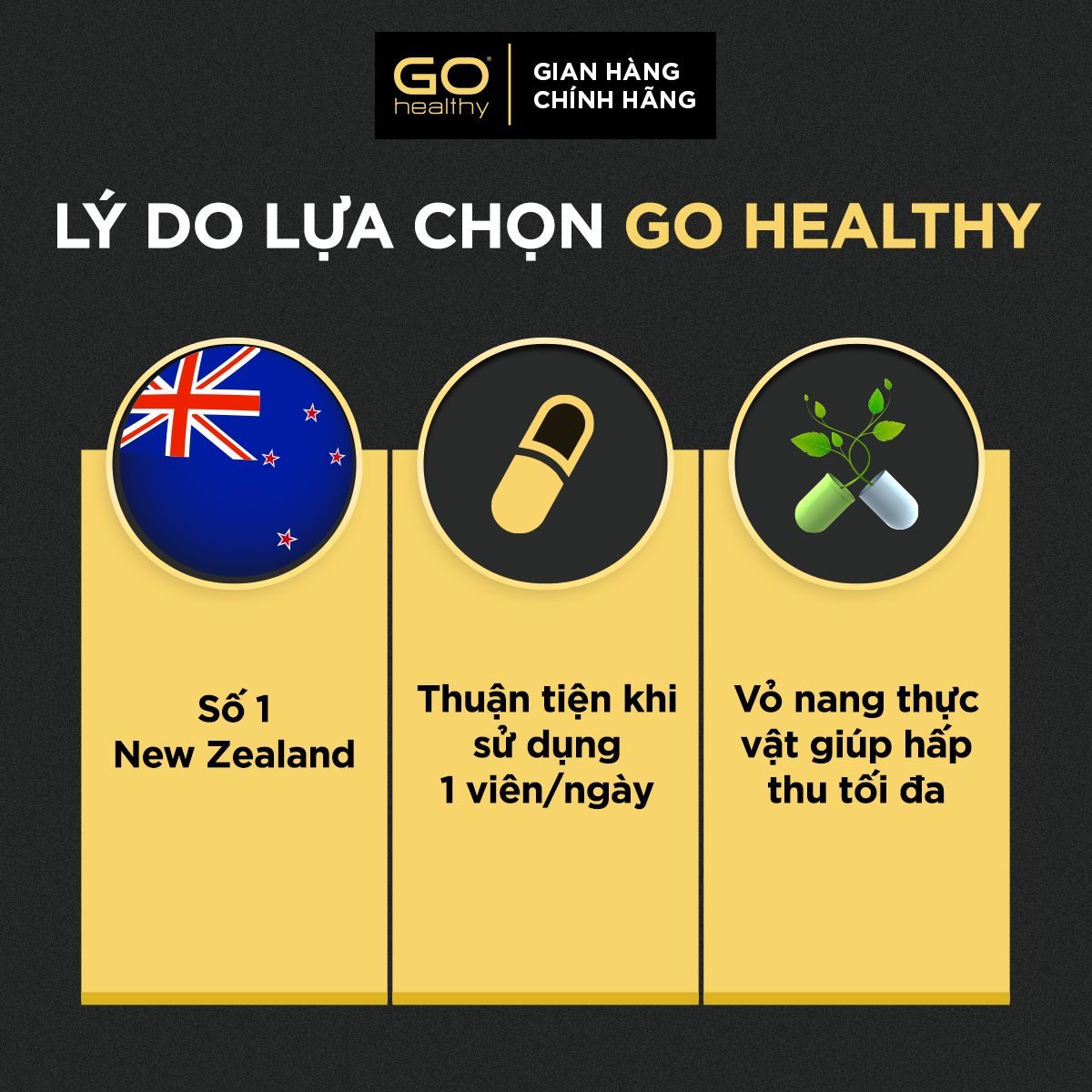 GO Healthy là thương hiệu thực phẩm bảo vệ sức khỏe dẫn đầu New Zealand và được người dân New Zealand bình chọn là sản phẩm chăm sóc sức khỏe được ưa thích nhất trong 8 năm liên tục (theo số liệu cập nhật đến 31/12/21 của IRI-Aztec MarketEdge Pharmacy [#1 ranked brand] Value Growth % MAT)