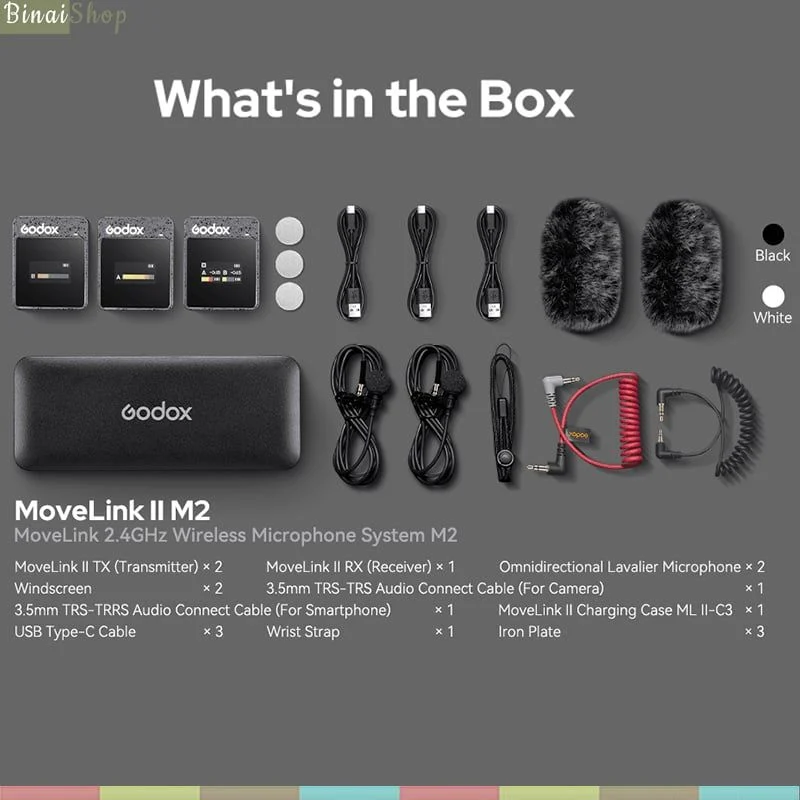 Keyword: Godox MoveLink II, Godox MoveLink II M1, Godox MoveLink II M2, micro Godox, micro thu âm, micro cài áo không dây, micro không dây phát trực tiếp, micro không dây cho máy ảnh, micro không dây cho điện thoại.