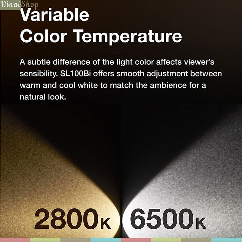 Nhiệt độ màu có thể điều chỉnh tùy theo ý thích với SL100D (ánh sáng trắng) và SL100Bi (ánh sáng trắng và ánh sáng vàng) có thể điều chỉnh trong khoảng 2800-6500K, công suất tối đa 100W phù hợp với không gian xung quanh, mang lại vẻ tự nhiên