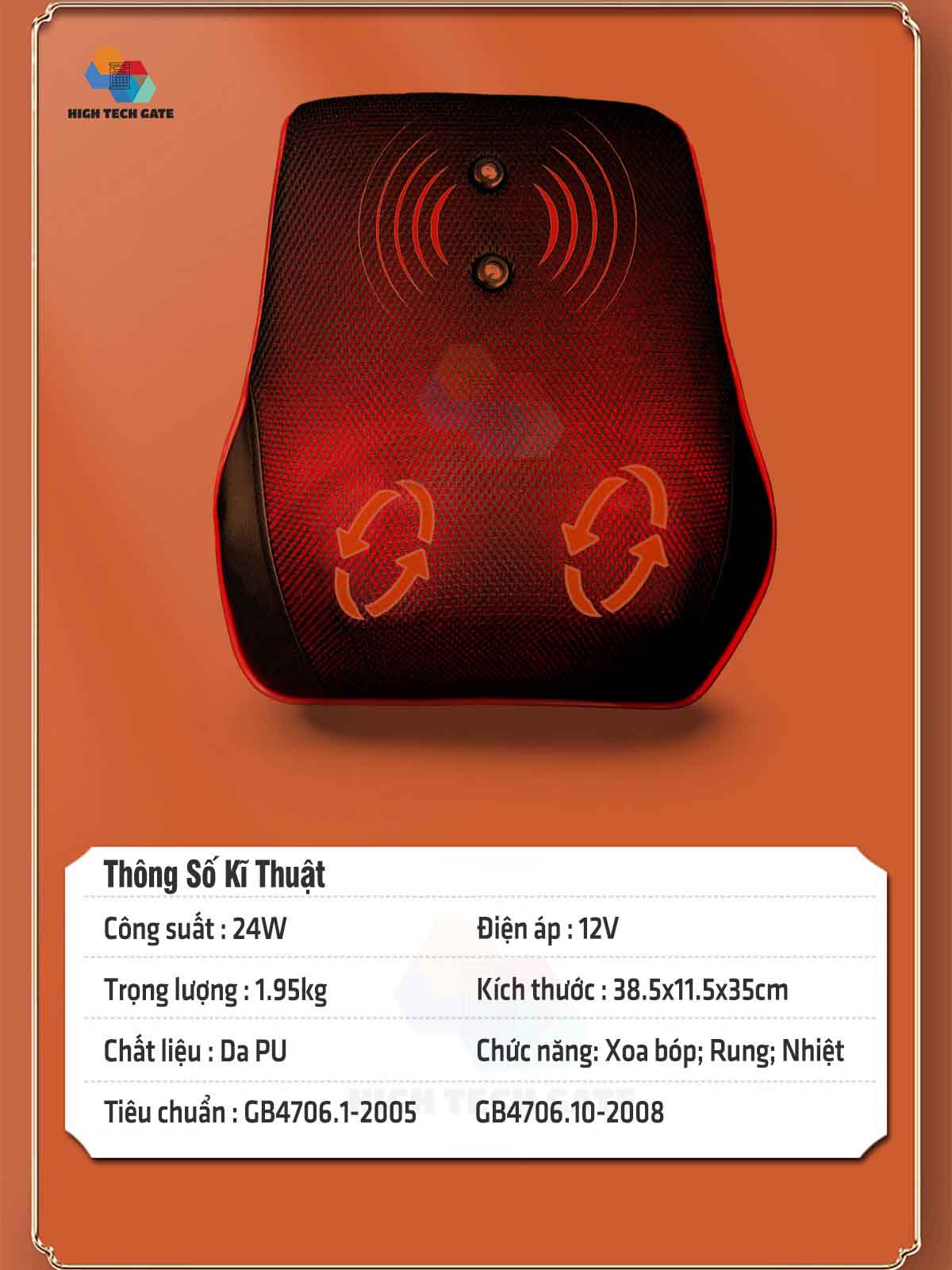 Gối massage hồng ngoại 8bi - Máy massage trị liệu THÔNG TIN SẢN PHẨM Tên sản phẩm: Gối Massage 8 Bi Car & Home * Điện nguồn: 220V / 50Hz. * Công suất: 22W. *