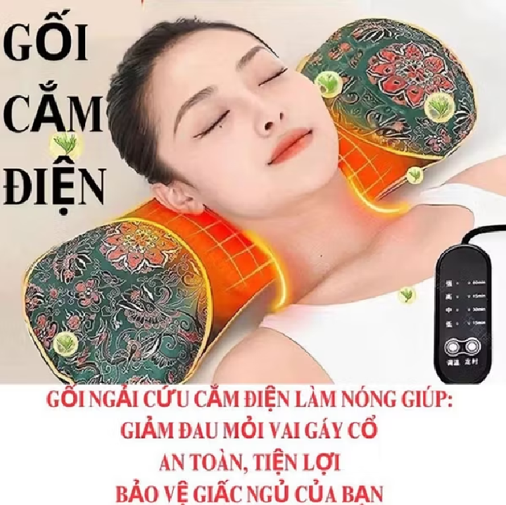 Gối ngải cứu điện giúp giảm đau mỏi cổ vai gáy đặc biệt ngủ ngon