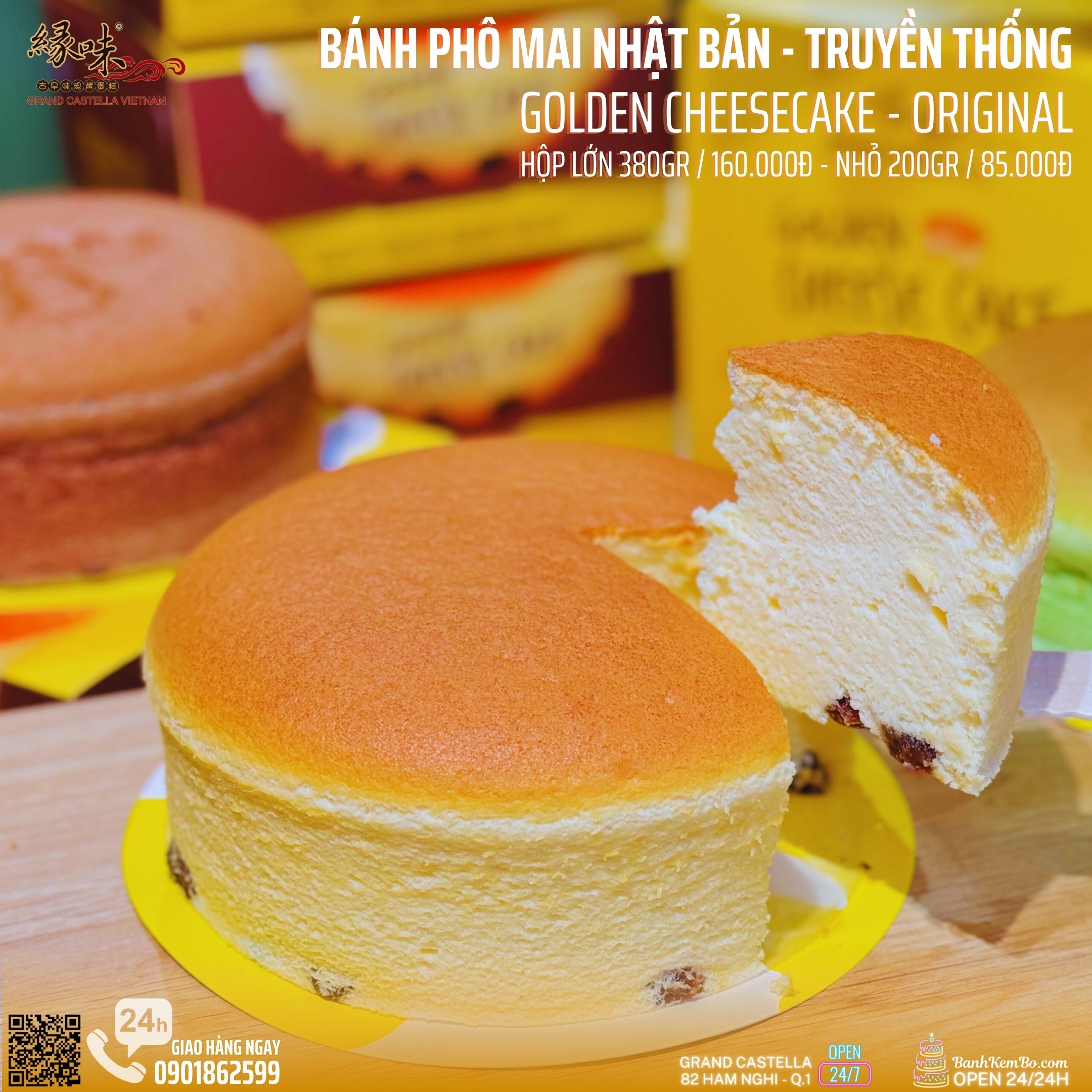 Với sản phẩm tươi sống, trọng lượng thực tế có thể chênh lệch khoảng 10%. Golden cheesecake là bánh bông lan làm theo công thức từ Japanese Cheesecake. Món bánh nổi tiếng có xuất xứ