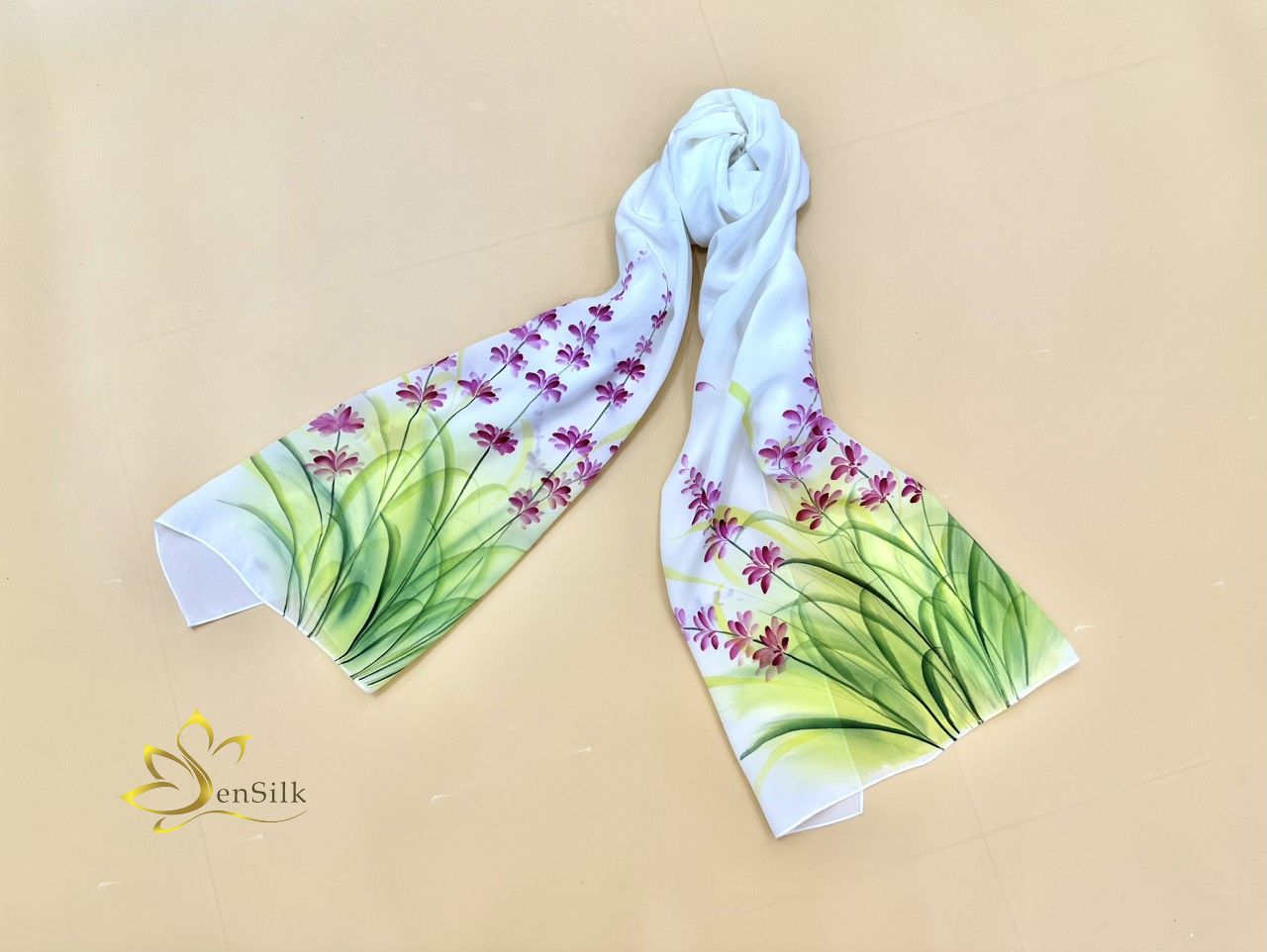 Khăn Lụa Vẽ Tay SenSilk Limited làm một tác phẩm nghệ thuật có 1 không 2 được tạo nên từ đôi bàn tay tài hoa của người họa sỹ kết hợp với Lụa Tơ Tằm Bảo Lộc