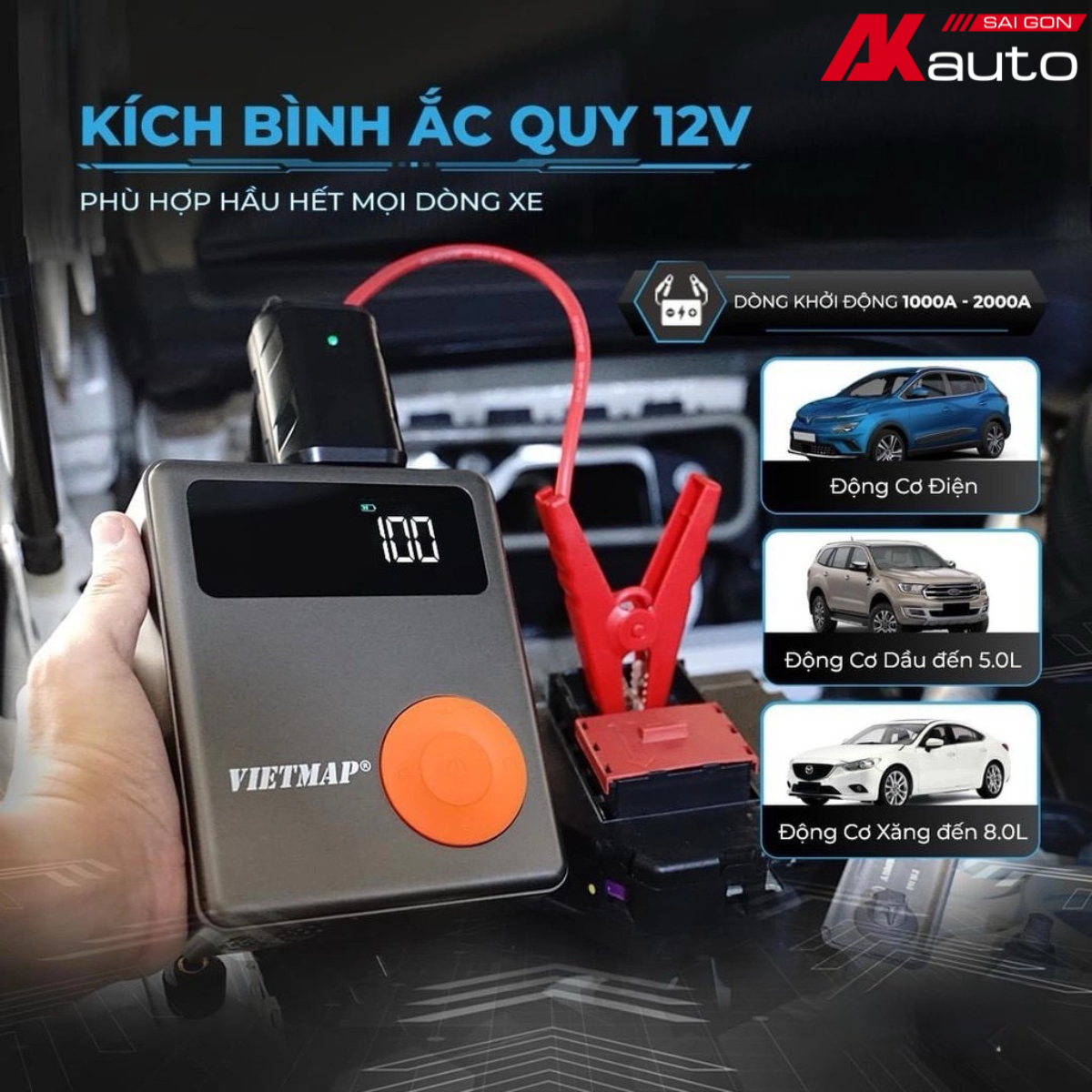 - Đa dạng chế độ chiếu sáng (SOS, nhấp nháy...), hữu ích trong các tình huống khẩn cấp. KÍCH BÌNH ẮC QUY MẠNH MẼ