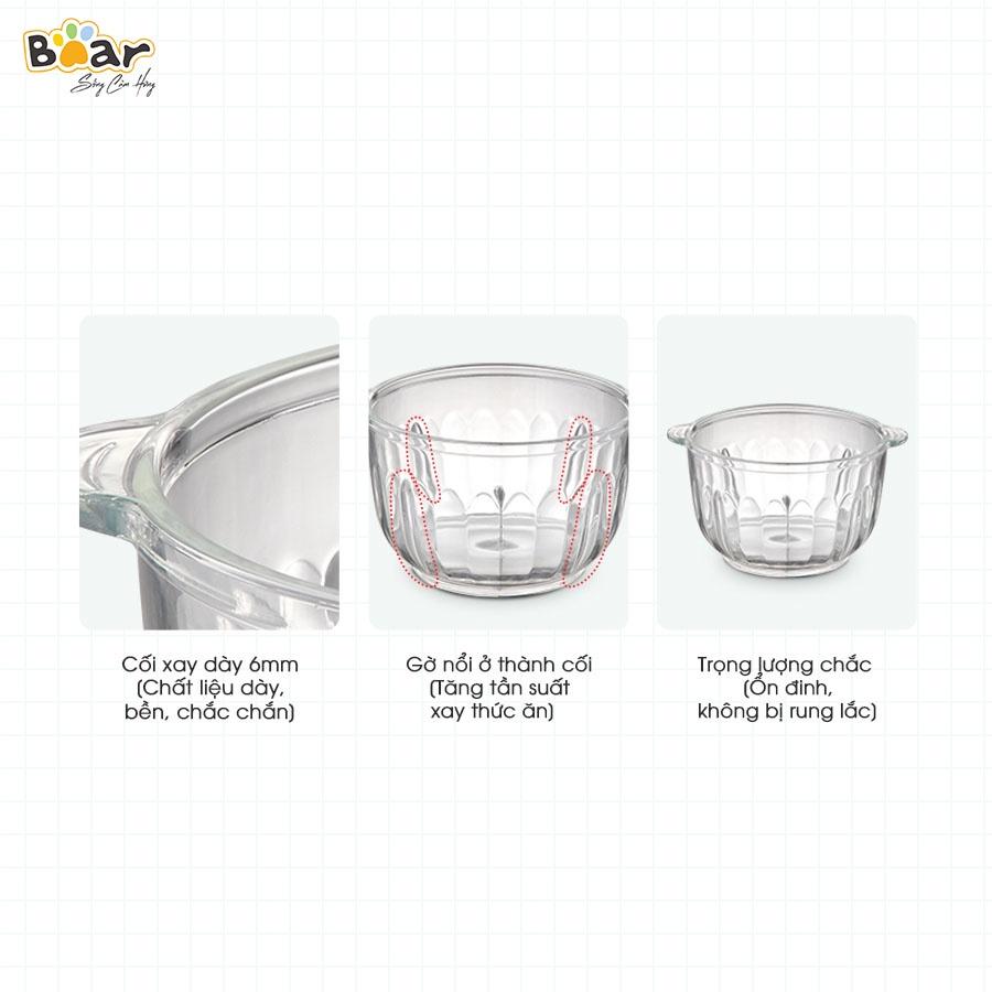 Máy xay bột khô Bear MDJ-A02G3 Thiết kế nhỏ gọn tiết kiệm không gian bếp Công suất: 200 W Chất liệu lưỡi dao: Thép không gỉ 304 Chất liệu cối xay: Nhựa PC Hoạt động