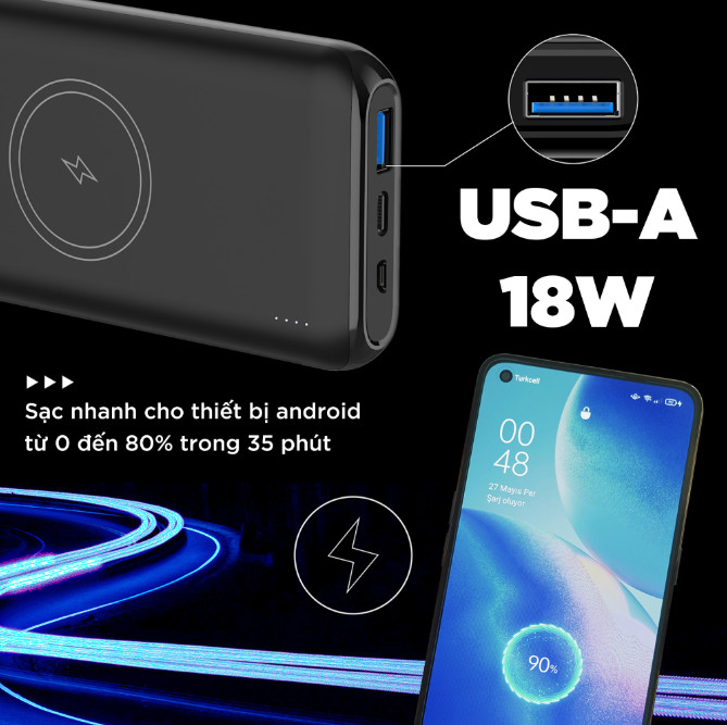 Chiếc pin dự phòng này được thiết kế để đáp ứng nhu cầu sạc nhanh và linh hoạt cho các thiết bị di động. Với dung lượng lớn 10.000 mAh (hai cell 5.000 mAh) giúp