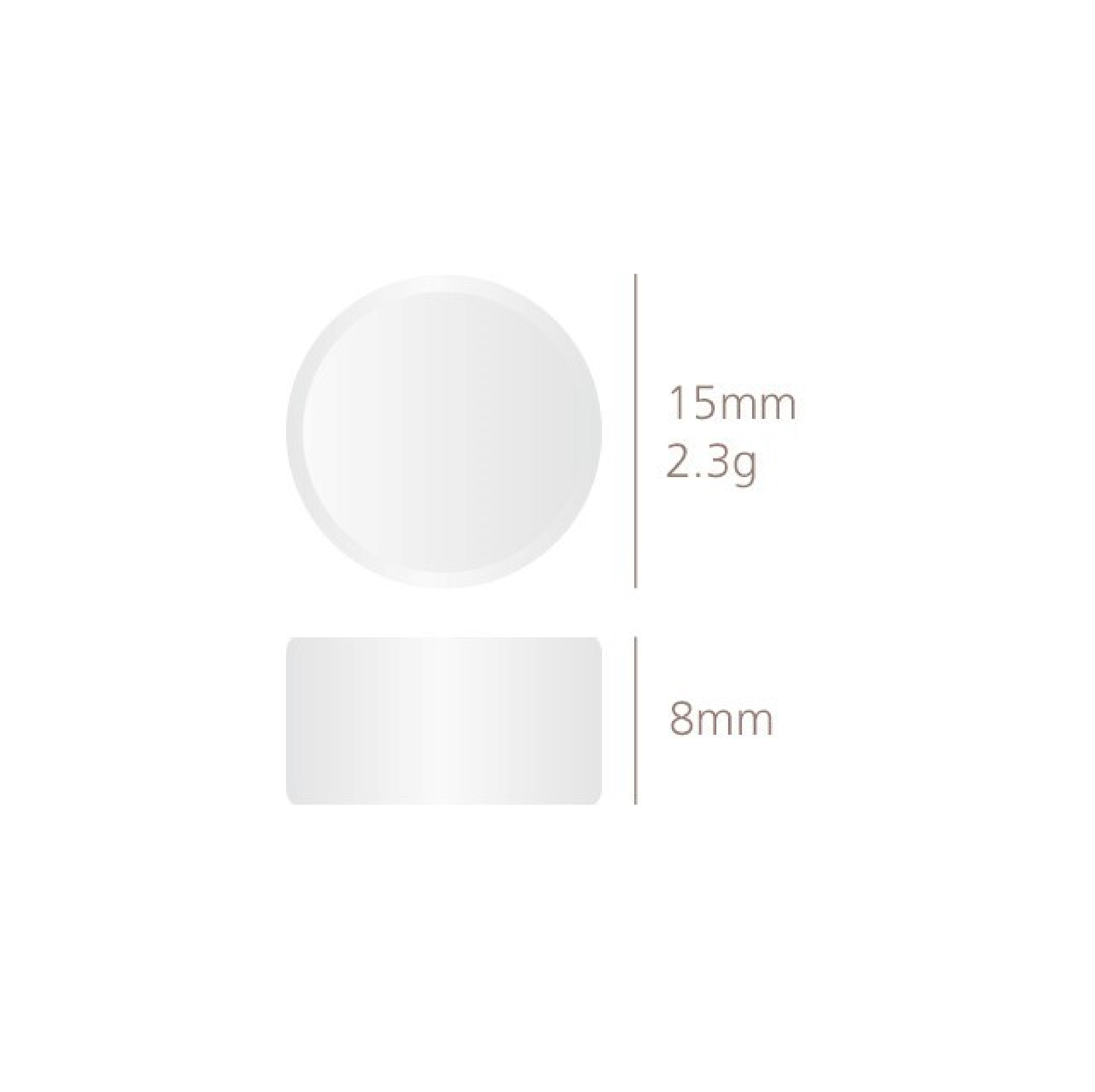 - Kích thước viên vệ sinh (rộng x cao): 15 x 8 mm
