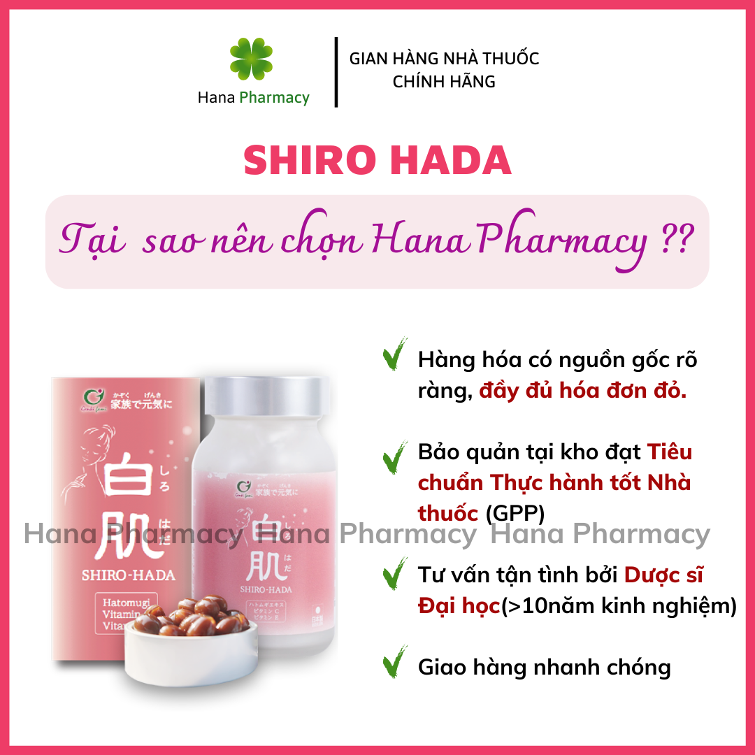 SHIRO HADA viên uống TRẮNG DA bật tone, NGỪA MỤN, giúp da hồng hào, mịn màng (Hộp 90v/30 ngày)
