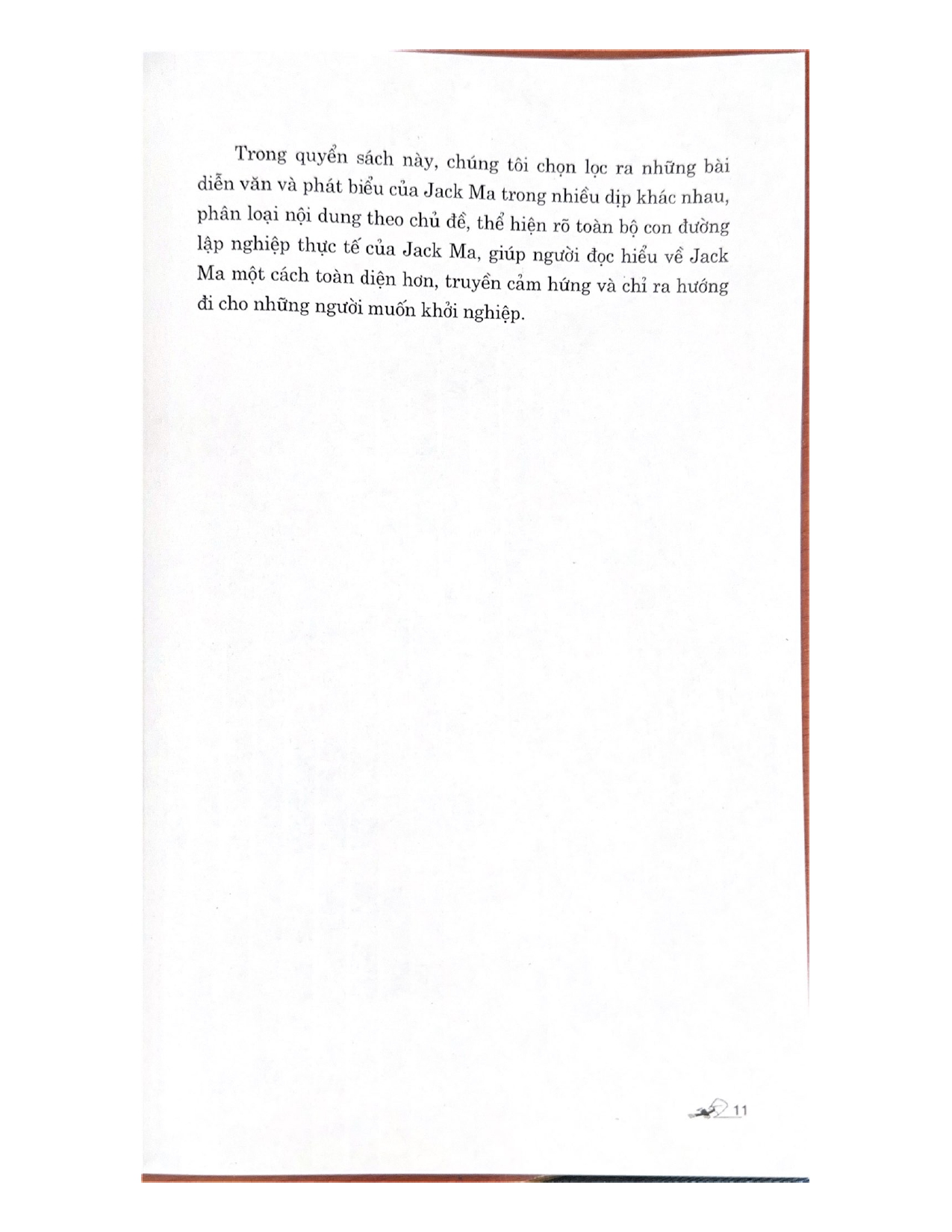 JACK MA - ALIBABA LÀM GIÀU TỪ THƯƠNG MẠI ĐIỆN TỬ đã sàng lọc và phân tích các bài phát biểu, đối thoại của Jack Ma, giải thích ý tưởng và mục tiêu của ông trong các giai đoạn phát triển quan trọng của Alibaba và đào sâu hơn về tầm nhìn, tâm trí và chiến lược đằng sau sự thành công ấy. Qua các bài phát biểu này, người đọc sẽ nhìn thấy một Jack Ma vừa hóm hỉnh vừa sắc bén, đã đem lại một định nghĩa hoàn toàn mới cho các doanh nghiệp Internet, đồng thời tác động mạnh mẽ đến các doanh nghiệp truyền thống. Lối tư duy của ông đã giúp vô số những người trẻ và doanh nhân tái lập kế hoạch phát triển Internet để thành công hơn trên thương trường thương mại điện tử ngày nay.