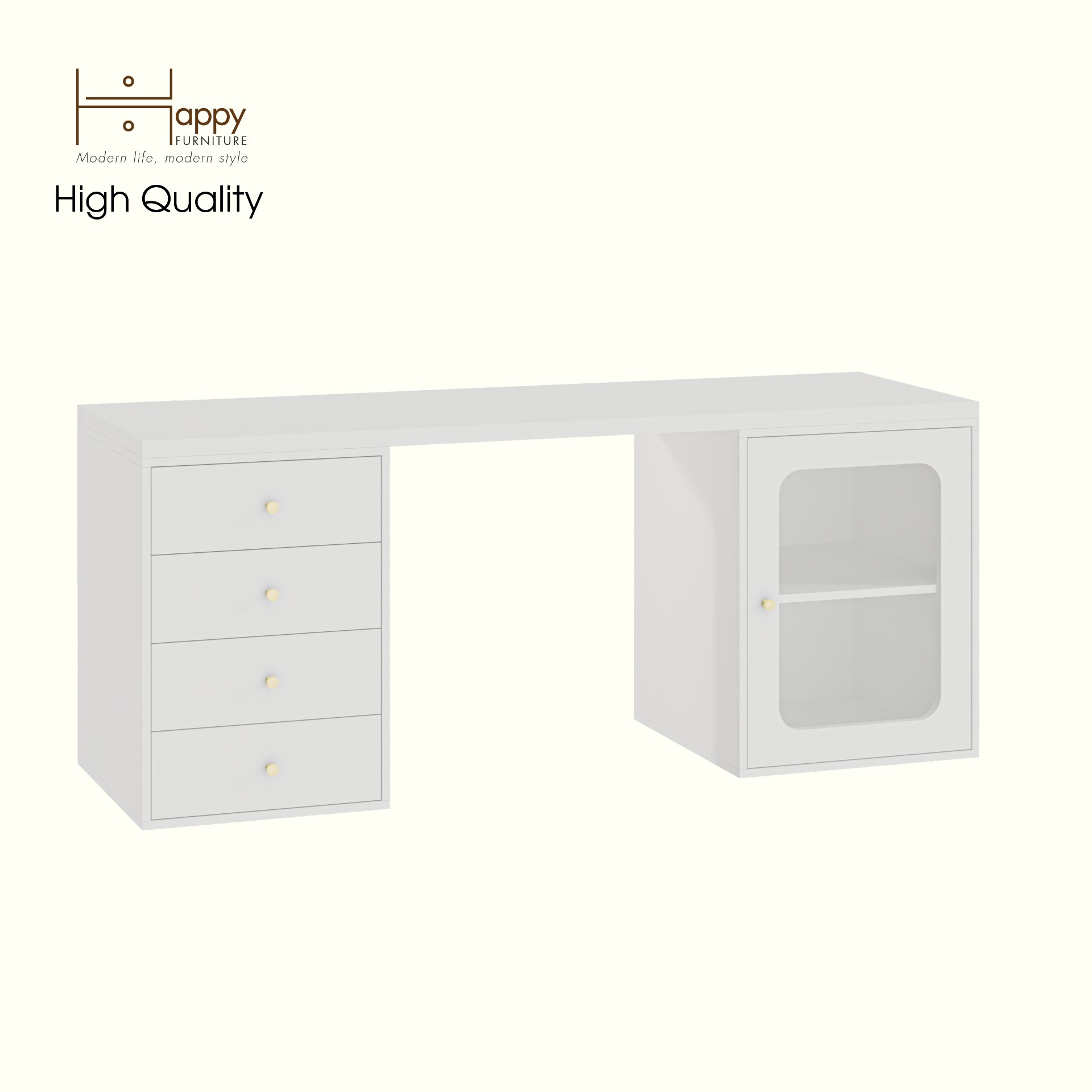 ✨HAPPY FURNITURE , Bàn làm việc 4 ngăn kéo 1 cửa kính - NOAH , BAN_160 , 180cm x 59cm x 75cm DxRxC