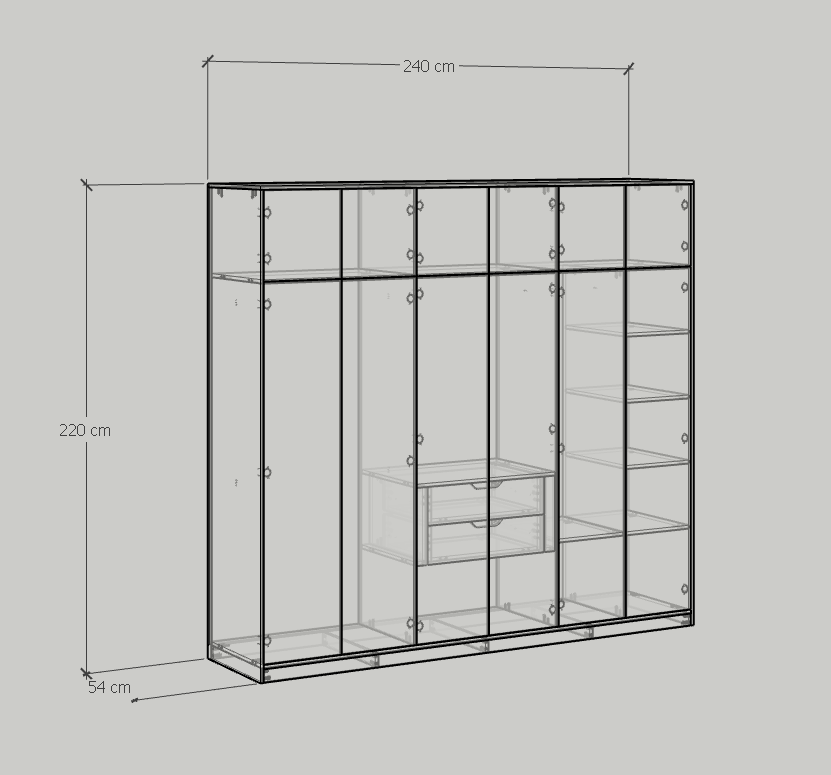 Kích thước sản phẩm : 240cm x 54cm x 220cm ( Ngang x sâu x cao )