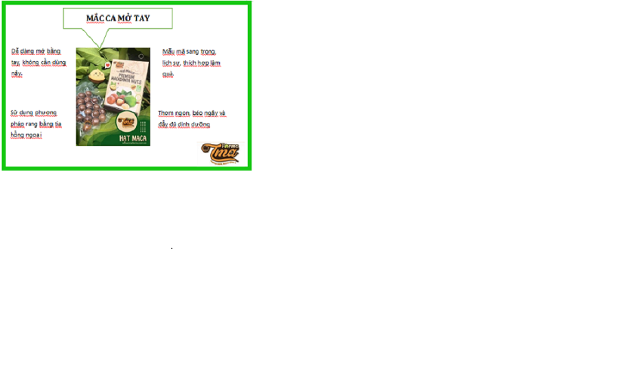 • Sản phẩm đạt tiêu chuẩn xuất khẩu. TMA Farms cam kết hàng chất lượng 100% đến tay người tiêu dùng. Hãy dùng thử để cảm nhận thật sự hương vị của hạt maca và giới thiệu cho  bạn bè khắp năm châu nhé.