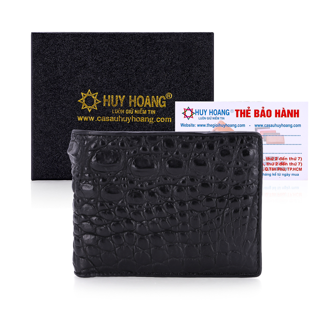 Ví/Bóp nam Huy Hoàng da bò vân cá sấu màu đen 2111