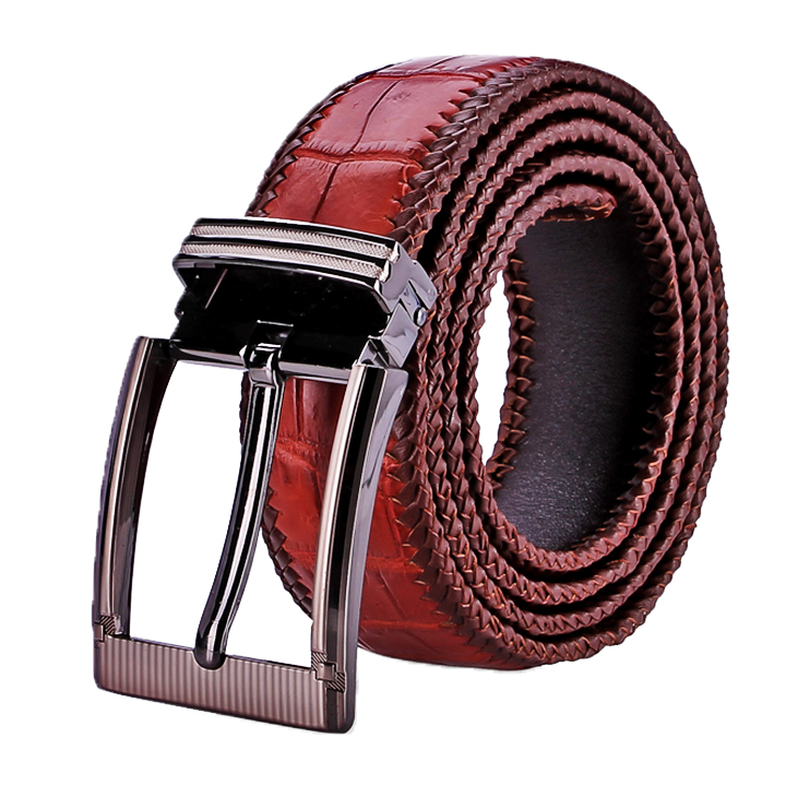 ✨HC4294-95-96-97 - Thắt lưng nam da cá sấu Huy Hoàng đan viền 4P đầu kim màu đen, nâu đất, nâu đỏ, vàng bò