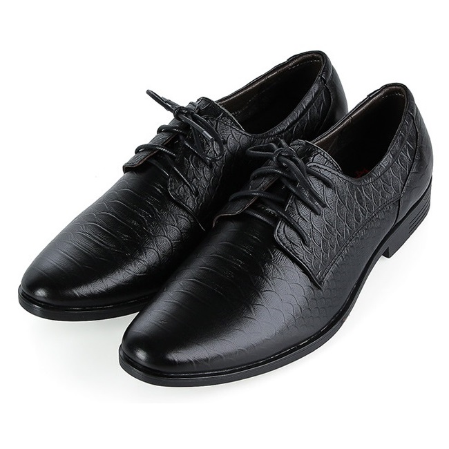 Giày tây nam Huy Hoàng da bò vân da trăn cột dây màu đen 7798